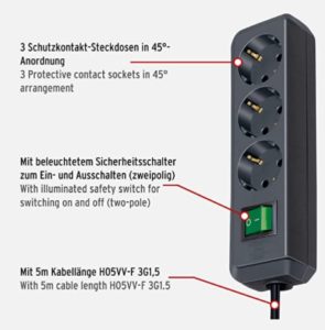 - Steckerleiste mit integrierter Kindersicherung: Kunststoffplättchen verschließen die Kontakte der Steckdose, GS-geprüft