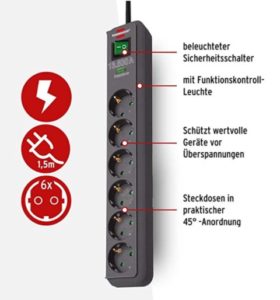 Brennenstuhl Eco-Line, Steckdosenleiste 6-fach mit Überspannungsschutz (Steckerleiste mit erhöhtem Berührungsschutz, Schalter) für 11,22€