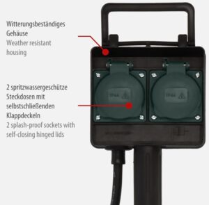 - Outdoor-Steckdosenleiste für den ständigen Einsatz im Freien, zum Anschluss von Gartenleuchten, Lichterketten, Radio, Elektrogrill usw.