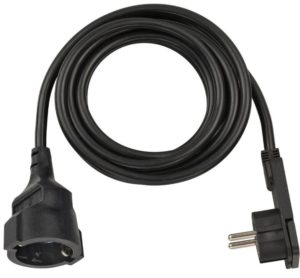- Extraflacher Schutzkontakt-Winkelstecker und Schutzkontakt-Kupplung aus Kunststoff mit 2m Kabellänge H05VV-F 3G1,5 und erhöhtem Berührungsschutz