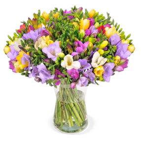 Du suchst einen farbenfrohen Blumenstrauß, der nicht nur mit seinen vielen Blüten begeistert, sondern auch mit seinem herrlichen Duft neue Maßstäbe setzt? Dann schau dir unseren sagenhaft schönen mit, bis zu 400 Blüten ausgestatteten Strauß an. Mit seinen 50 bunten Freesien ist er ein echter Frühlingszauber und der perfekte Blumenstrauß, um auf den Sommer einzustimmen.“ …also, bald ist wieder Frühling!