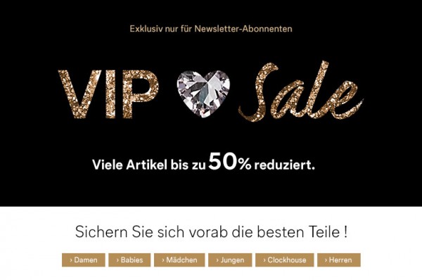 Bei C&A gibt es ab heute bis zu 50% Rabatt im VIP-Sale.