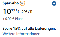 Mit dem Spar-Abo profitierst du von kostenlosem Standardversand für automatische Lieferungen (für alle ohne Prime-Mitgliedschaft fallen bei der ersten Lieferung möglicherweise Versandkosten an) und der Möglichkeit, Lieferungen an deinem Spar-Abo-Liefertag zu planen. Qualifizierte Produkte weisen oft einen im Vergleich zum Preis bei Amazon und im Amazon Marketplace reduzierten Preis auf. Du kannst ein Abonnement jederzeit kündigen. 🚫