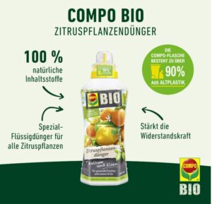 - Lieferumfang: 1 x COMPO BIO Zitruspflanzendünger, Dünger für Zitrusfrüchte, Spezial-Flüssigdünger aus 100% natürlichen Inhaltsstoffen, 500 ml, Art.-Nr. 22245