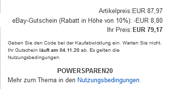 für 79,17€ (Vergleichspreis: ~87€) Ersparnis ~8€