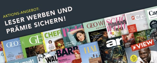 Beim deutschen Pressevertrieb ist nun wieder bis einschließlich 7. November eine Herbstkampagne mit vielen günstigen Abos gestartet. Aus unserer Erfahrung heraus kann man sagen, dass viele Abos womöglich schnell vergriffen sein werden. Aus diesem Grund empfehlen wir: Nicht lange überlegen, wenn euch eine Zeitschrift interessiert – zuschlagen!