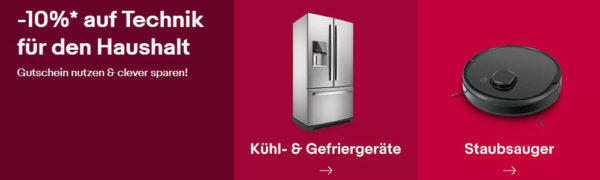 Bei eBay erhaltet ihr NUR HEUTE 10% Rabatt auf ausgewählte Artikel aus den Bereichen Technik & Haushalt.