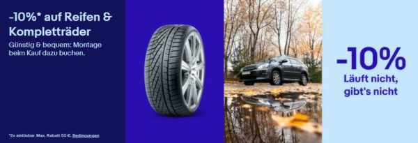 Bei Ebay gibt es dank einem Gutscheincode 10% Rabatt für Reifen & Kompletträder