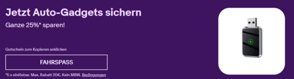 Bei Ebay gibt es bis zum 29.12.2025 nun 25% auf Auto-Accessoires.