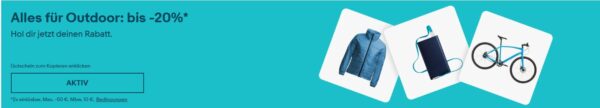 ebay Coupon – 10%-20% auf Outdoor & Sport