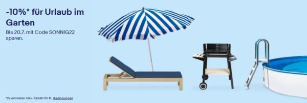 Bei ebay ist gerade eine neue Aktion gestartet bei der ihr 10% Rabatt auf ausgewählte Haus- & Gartenprodukte bekommt.