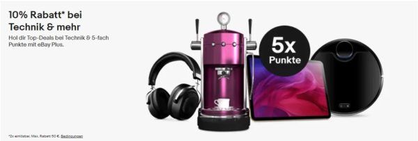 Bei ebay ist gerade eine neue Aktion gestartet bei der ihr einen 10% Rabatt auf Elektronik, Haushaltsgeräte & Lifestyle bekommt.