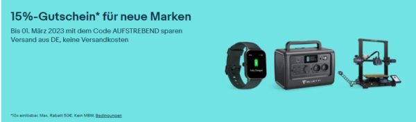 Bei ebay ist gerade eine neue Aktion gestartet bei der ihr 15% Rabatt auf aufstrebende Marken bekommt