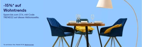 Bei ebay ist gerade eine neue Aktion gestartet bei der ihr 15% Rabatt auf ausgewählte Haus- & Gartenartikel bekommt.