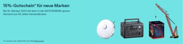 ebay Coupon – 15% Rabatt auf Neue Marken – z.B. Haushaltsgeräte, Spielwaren, Technik uvm.