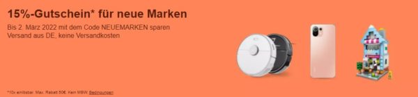 Bei ebay ist gerade eine neue Aktion gestartet bei der ihr 15% Rabatt auf neue Marken bekommt.