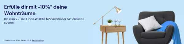 Bei ebay ist gerade eine neue Aktion gestartet bei der ihr 10% Rabatt auf ausgewählte Haus- & Gartenartikel bekommt. Es gibt keinen Mindestbestellwert, doch der maximale Rabatt liegt bei 50€.