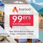 für 24,95€ (Vergleichspreis: 31€) Ersparnis ~7€ - *NEU* Animod 99ers Multi Hotel Gutschein (3 Tage, 2 Personen, über 100 Hotels) für 89,98€ (Vergleichspreis: ~€) Ersparnis ~€