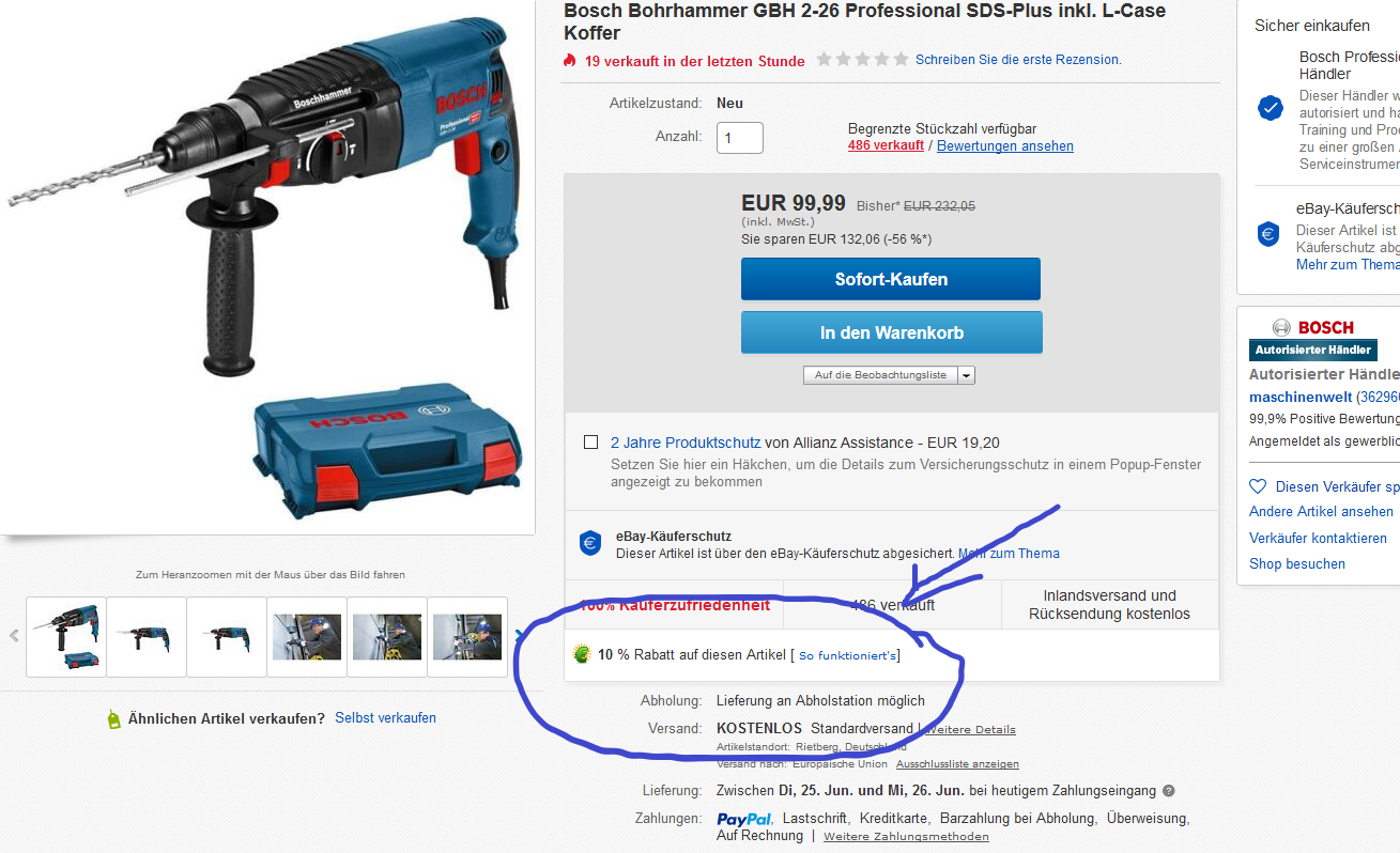 Tayfun 20.06.2019, 08:51 #Den Bosch Bohrhammer mit dem Code: PINATA1 für 89,99 (somit 10 Euro günstiger)