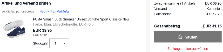 AlphaTier 22.05.2021, 08:34 #Die PUMA Smash Buck Sneaker gibt es mit dem Gutscheincode PSNEAKER2021 für 31,16 €.