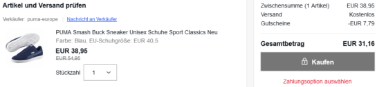 - mit dem Gutschein PSNEAKER2021 für 30,36€