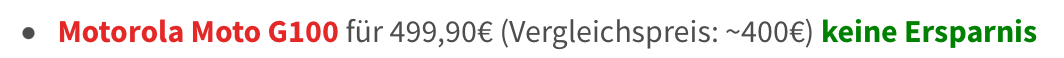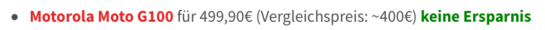- Motorola Moto G100 für 499,90€ (Vergleichspreis: ~400€) keine Ersparnis