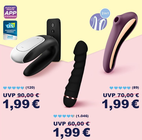 Eis.de hat ein paar Vibratoren für 1,99€ im Angebot. Allerdings müsst ihr bei einem Tagestipp-Deal wie diesen hier für mindestens 29,95€ bestellen.