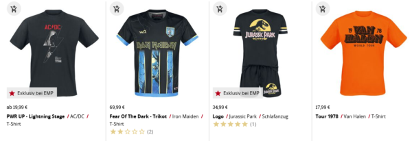 Beispiel-Deals findet man leider fast keine, da die Produkte alle von EMP ziemlich exklusiv sind. Wer aber öfters dort bestellt der weiß dass Rabatte sehr selten sind.