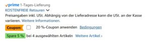 TIPP | Als PRIME-Mitglied von Amazon erhaltet ihr den Versand für einen Großteil des Sortiments bereits ohne das Erreichen von 39€ GRATIS! Amazon PRIME könnt ihr (HIER) 30 Tage (bzw. als Student oder Auszubildender 6 Monate) lang absolut kostenlos testen. Im Anschluss an den kostenlosen Testzeitraum kostet Amazon PRIME 89,90€/Jahr, bzw. 8,99€/Monat). Studenten, Auszubildende, rundfunkbeitragsbefreite Kunden oder Kunden mit Sozialpass (HIER) zahlen 44,90€/Jahr, bzw. 4,49€/Monat.