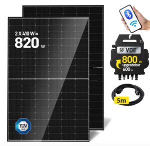 - 🌞 Die Solarmodule haben eine Gesamtleistung von 820 W (2x410W)