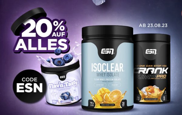 Es ist mal wieder soweit… Nachschub bei ESN! Dort erhaltet ihr bis einschließlich 30. August satte 20% Rabatt auf alle ESN Produkte