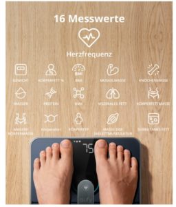 - Die eufy Smart Scale P2 Pro ist eine fortschrittliche Personenwaage, die 16 detaillierte Messwerte zum Gesundheitszustand Ihres Körpers liefert, einschließlich Gewicht, Körperfett, BMI, Muskelmasse, Knochenmasse und sogar Herzfrequenz. Perfekt für diejenigen, die ihre Fitnessziele verfolgen und ihren Körper besser verstehen möchten.