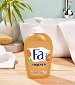Bei Amazon bekommt ihr für unbestimmte Zeit die Fa Hygiene & Frische Flüssigseife mit dem erfrischenden Duft von Orange, Antibakterieller Effekt, 250 ml für 0,79€