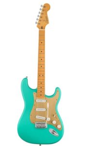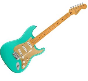 Das markante Merkmal dieser Gitarre ist ihr atemberaubendes Satin Seafoam Green Finish. Es verleiht der Stratocaster einen eleganten und doch auffälligen Look, der auf der Bühne oder im Studio garantiert die Blicke auf sich zieht. Der Ahornhals mit einem modernen „C“-Profil sorgt für eine bequeme Spielbarkeit und ermöglicht ein schnelles und präzises Spiel.