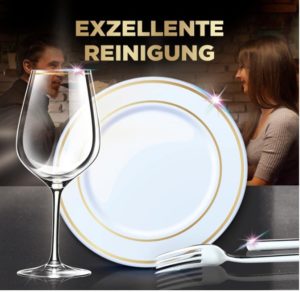 - Auch empfindliches Geschirr wird im Nu sauber – mit Farb- und Glanzschutz für Glas, Geschirr-Dekor und Silberbesteck