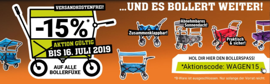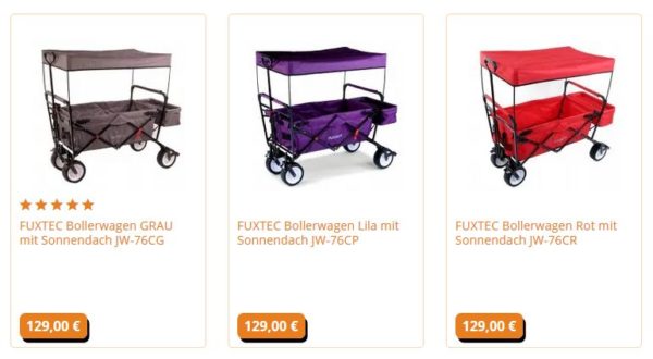 Im Onlineshop von Fuxtec bekommt ihr 10% Rabatt auf alle Bollerwagen.