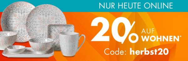 Im Onlineshop von Galeria bekommt ihr heute als Dienstagsangebot 20% Rabatt auf den Bereich Wohnen.
