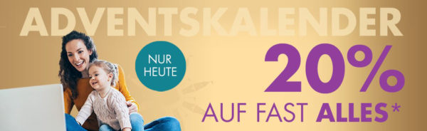 Im Rahmen des Adventskalenders erhaltet ihr nur heute satte 20% Rabatt auf (fast) ALLES. 🙂