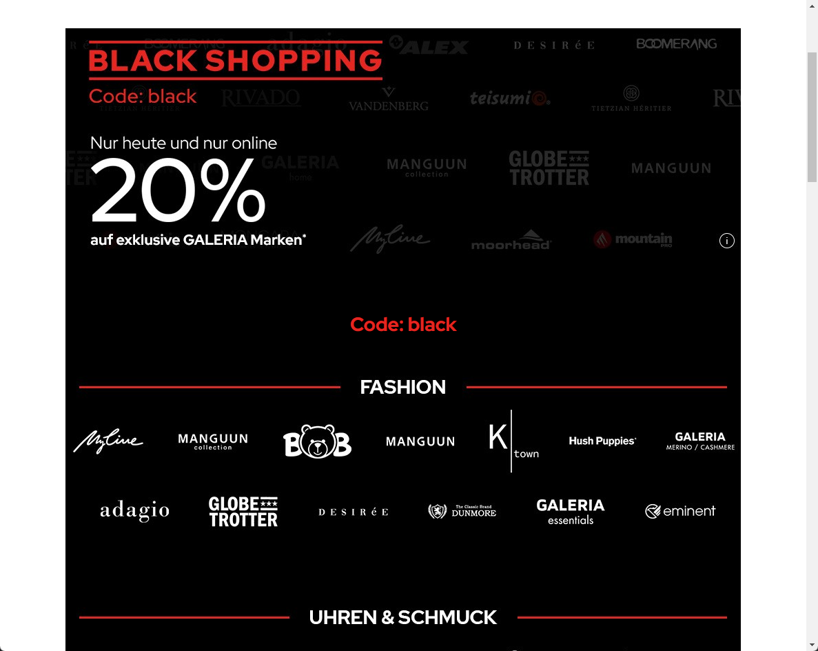 20% auf viele Artikel bei einem Einkauf ab 100€. Code: galeria20100