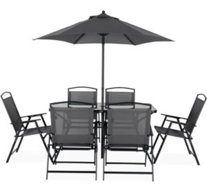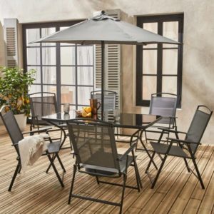 Gartentisch mit 6 Sesseln & Sonnenschirm für 179,99€