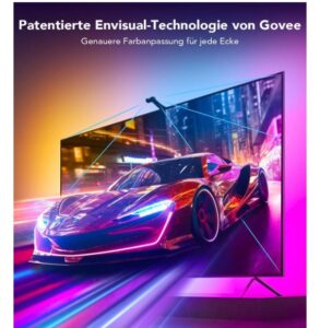 - Govee Envisual Technologie: Das innovative Zonenfarberfassungsschema ermöglicht eine Echtzeit-Farbanpassung, um das visuelle Erlebnis und die Unterhaltung über Ihren Fernsehbildschirm hinaus zu verbessern.