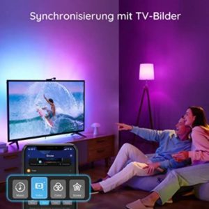 - Intelligente Farbauswahl: Mit der 1080P Kamera werden die Farben auf dem Fernsehbildschirm erkennt und dann automatisch auf dem LED Strip angewendet. Dadurch können die Farben des Bildschirms in Echtzeit mit Lichteffekten erweitert werden