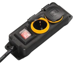 - Robuste Verteiler-Steckdose für Draußen: Zum Anschluss von bis zu zwei elektrischen Verbrauchern im Außen-Bereich, mit beleuchtetem 2-poligen Ein-/Ausschalter und selbstschließenden Deckeln, GS-geprüft