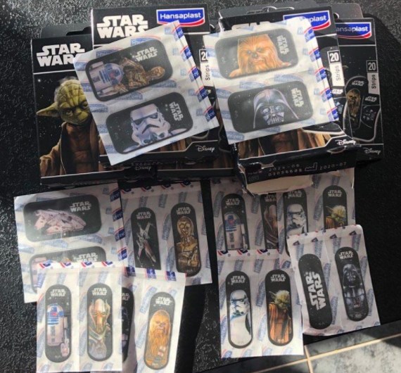 - Verschiedene STAR WARS Pflaster, um Ihren kleinen Jedi abzulenken und zu erfreuen