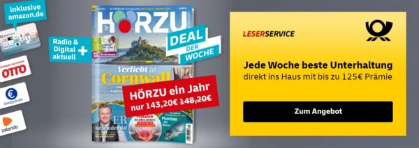Schönes Ding! 🗞️ Als Deal der Woche erhaltet ihr die Zeitschrift HÖRZU in verschiedenen Ausführungen zu attraktiven Konditionen. 😎