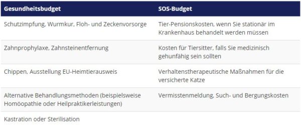 Dazu kommt das jährliches Gesundheits- und SOS-Budget für Vorsorgemaßnahmen oder Notfall-Leistungen, das je nach Tarif zwischen 80€ und 240€ liegt.