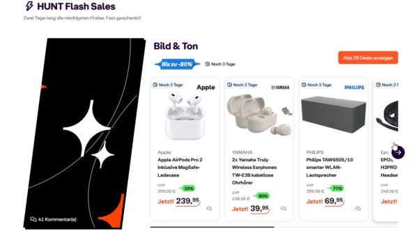 Bei der HUNT handelt es sich um eine Aktion zum Abverkauf von Restbeständen. Insgesamt warten wieder einige hundert Deals aus den Bereichen Elektronik & Computer sowie Sport, Fashion & Lifestyle auf euch.