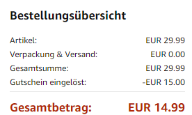 Gutscheincode: 3L47PK97 | Wendet diesen Gutscheincode im Warenkorb an und erhaltet den Rabatt.