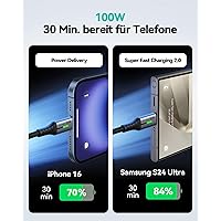 - Holen Sie sich die schnellste Ladeleistung für Ihr iPhone 15: Erleben Sie die nächste Stufe des Ladens! Mit unserem blitzschnellen 100W USB-C auf USB-C Kabel erreicht Ihre iPhone 15 Serie in nur 30 Minuten erstaunliche 71% Akkuleistung. Verpassen Sie nicht diese Laderevolution!