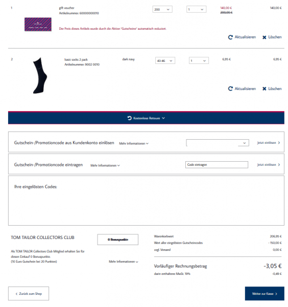 Doch im Endeffekt kann man die Gutscheine wieder bei TomTailor einpflegen und kombinieren. 🙂